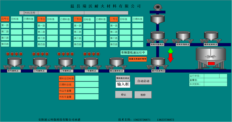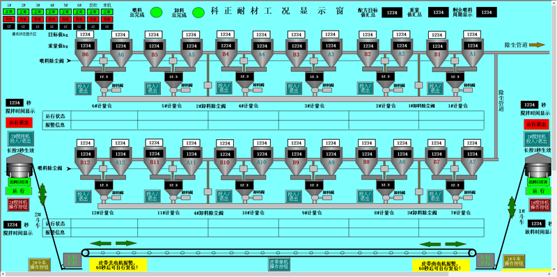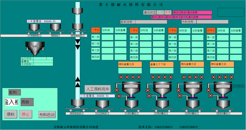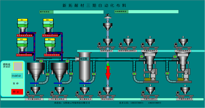 本公司擁有優(yōu)良的生產(chǎn)設(shè)備和技術(shù)開發(fā)團(tuán)隊,以良好的管理模式,豐富的生產(chǎn)和設(shè)計經(jīng)驗為環(huán)保工作做出了顯著的效果。主要針對鋼鐵、耐材等行業(yè)無塵環(huán)保配料工藝的改進(jìn),設(shè)計和生產(chǎn)全自動化無塵配料設(shè)備。除塵部分分為:集中式收塵和分散式收塵。計量部分分為:增量計量和減量計量控制模式。控制部分分為:純單片機(jī)控制、單片機(jī)加PLC控制、純PLC控制。